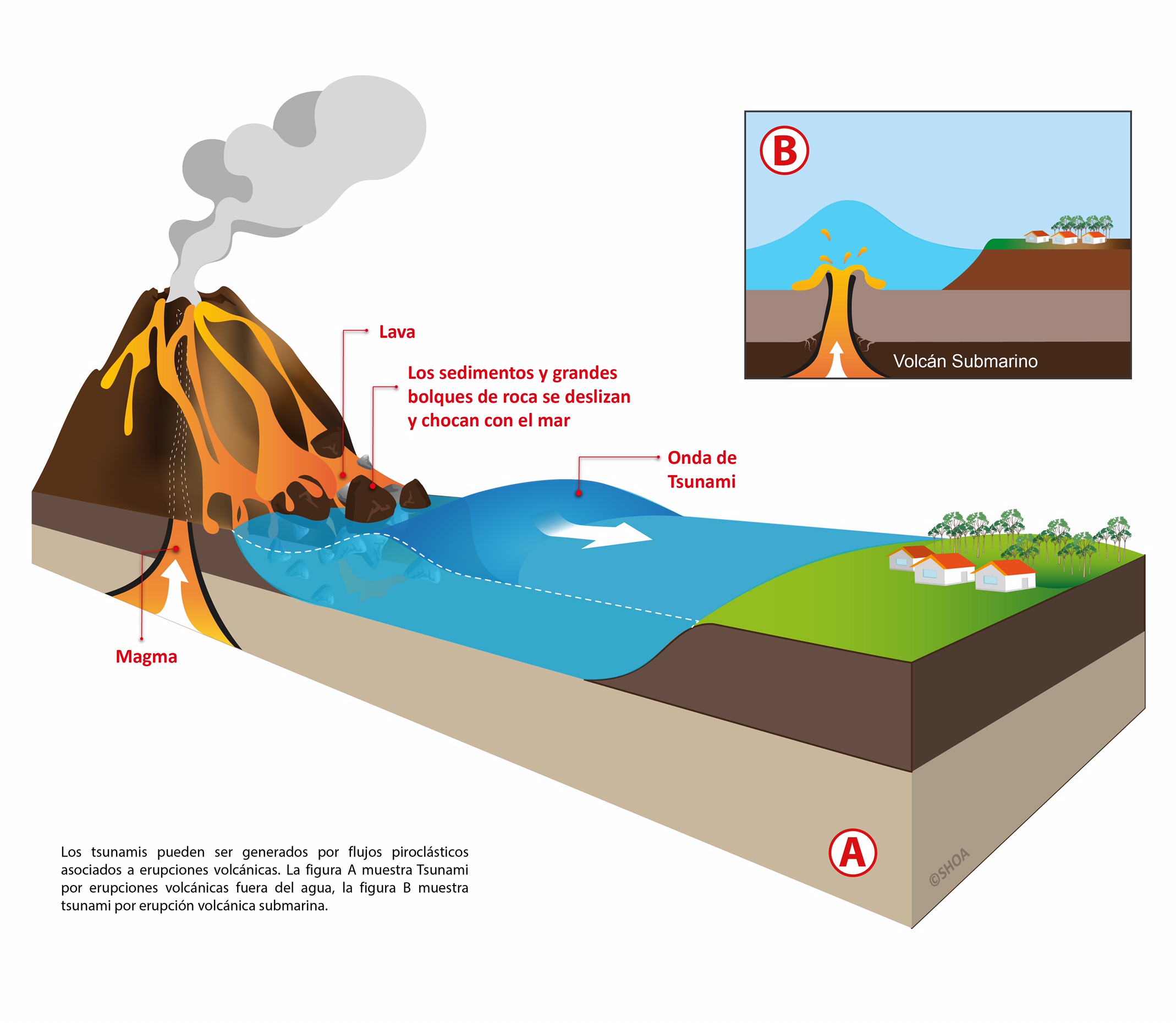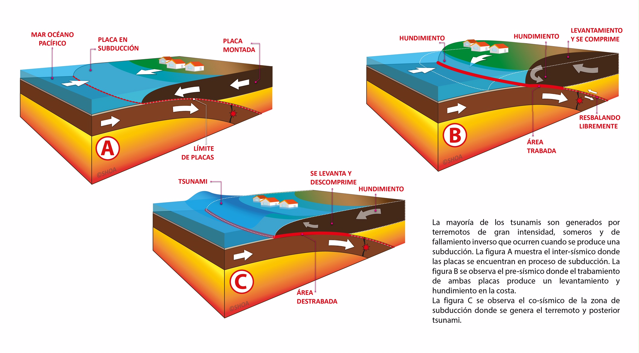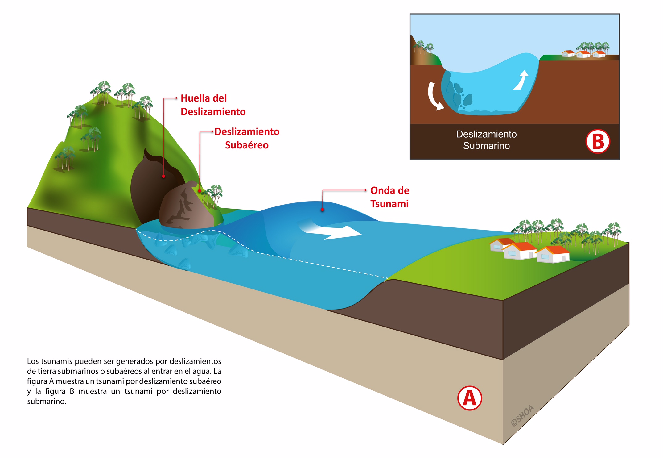 Los Tsunamis son una serie de ondas de longitud y periodo sumamente largos, normalmente generados por perturbaciones asociadas con terremotos que ocurren bajo el fondo oceánico o cerca de él. Así mismo las erupciones volcánicas, los deslizamientos de tierra submarinos, los derrumbes costeros de montañas, y el impacto en el mar de un meteorito de gran tamaño, también pueden dar origen a la generación de un tsunami. Estas ondas pueden alcanzar grandes dimensiones y viajar por toda la cuenca oceánica perdiendo poca energía. Al acercarse a aguas someras se amplifican y aumentan en altura, inundando áreas bajas; y donde la topografía submarina local provoca amplificación extrema de las olas, estas pueden romper y causar daños importantes. Los tsunamis no guardan relación con las mareas. Los Tsunamis pueden ser de origen cercano o de origen lejano.